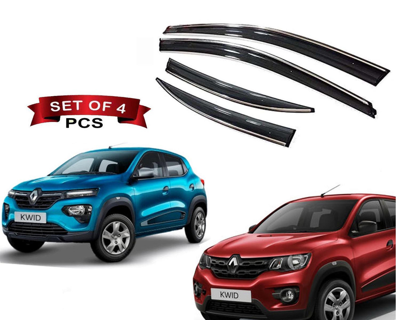 - Chromeline Car Door Visor Side Window Deflector Rain Guard for Renault Kwid
