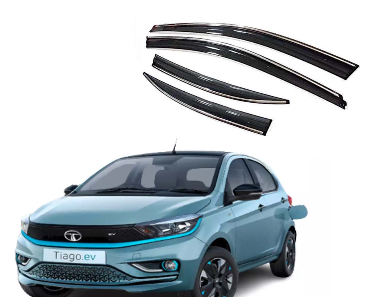 - Chromeline Car Door Visor Side Window Deflector Rain Guard for Tata Tiago EV.