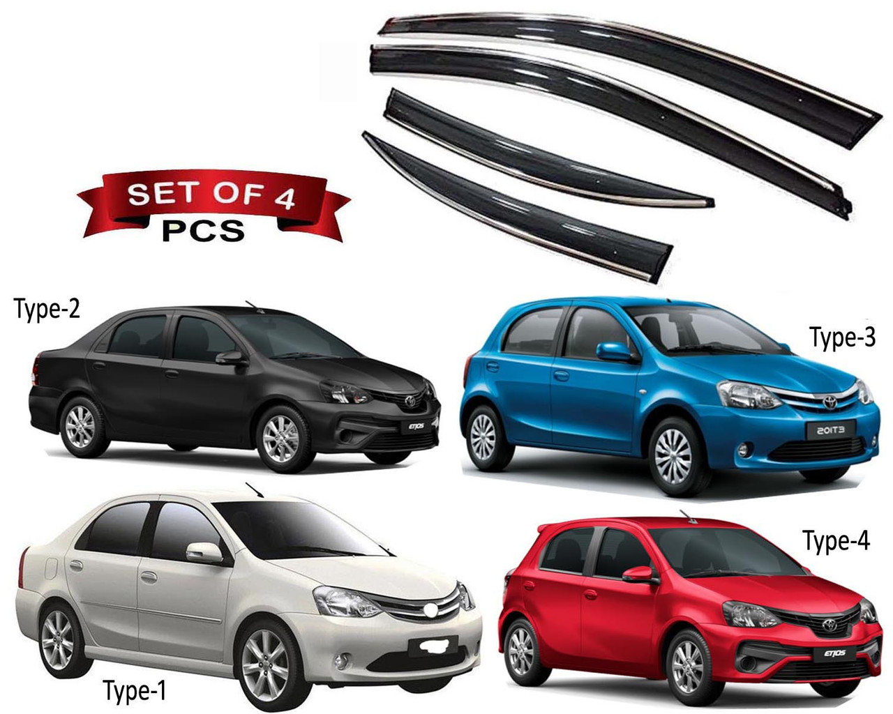 Auto E-Shopping Chromeline Door visor for Toyota Etios Set of 4 Pieces