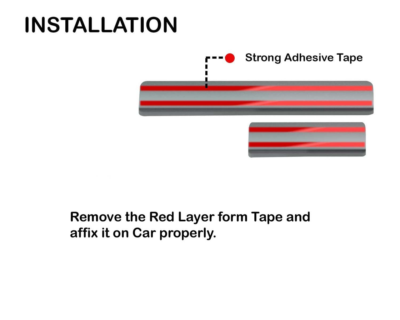 • Car Door Entry Scuff Plate Protection is easy to install with its affixed Adhesive Tape. Just peel off the tape protection film and affix the bar at correct place.