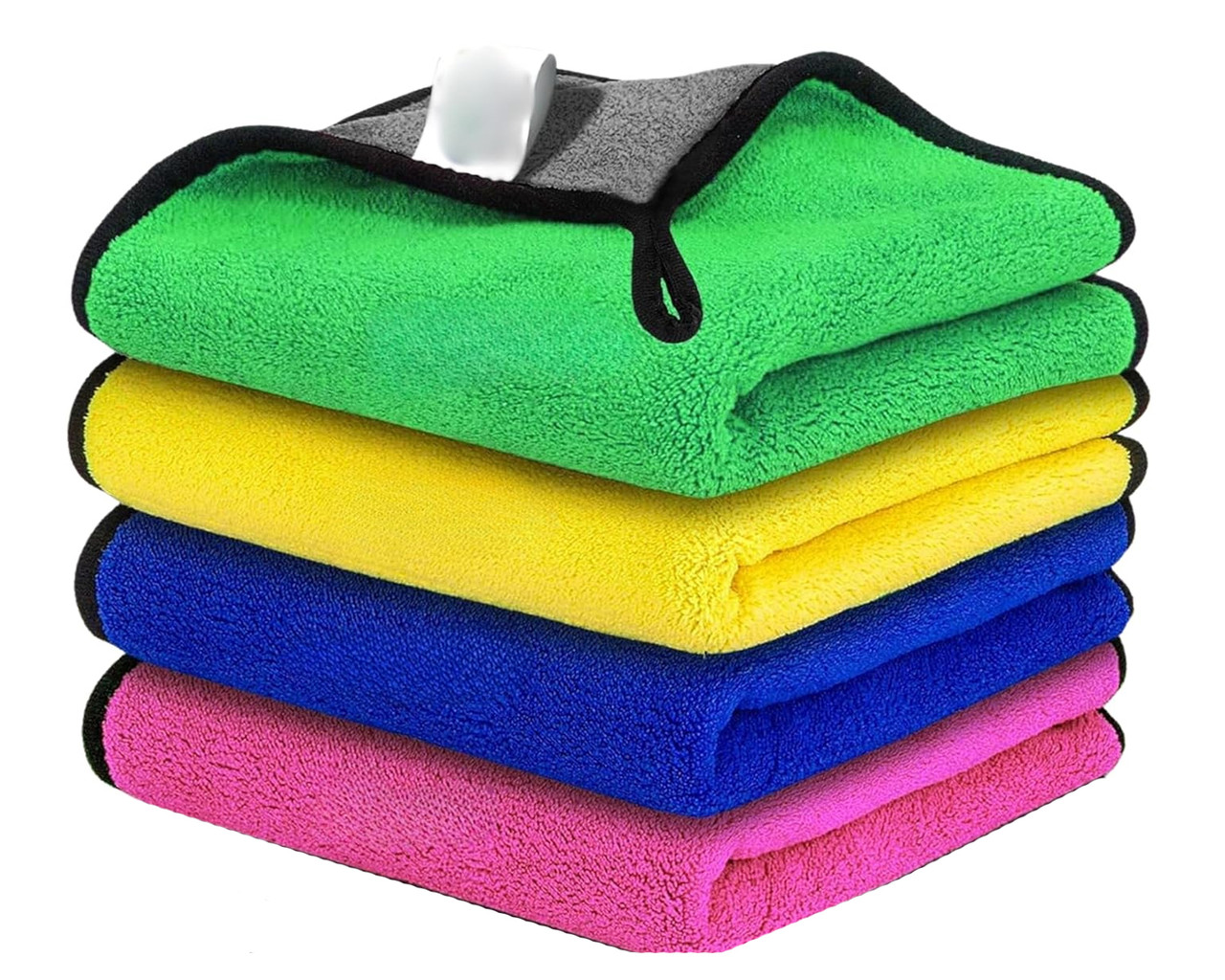 Microfiber Car Cleaning Multicolor Cloth Towel Pack of 4 Piece 40×40 500 GSM for Car Bike Cleaning Polishing Washing & Detailing