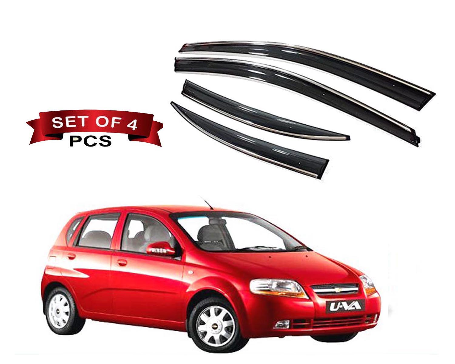 Auto E-Shopping Chevrolet Aveo UVa Chromeline Door Visor Side window wind rain deflector – Black Color